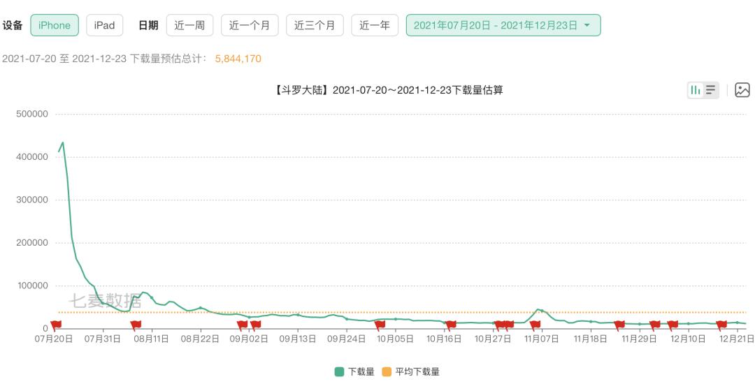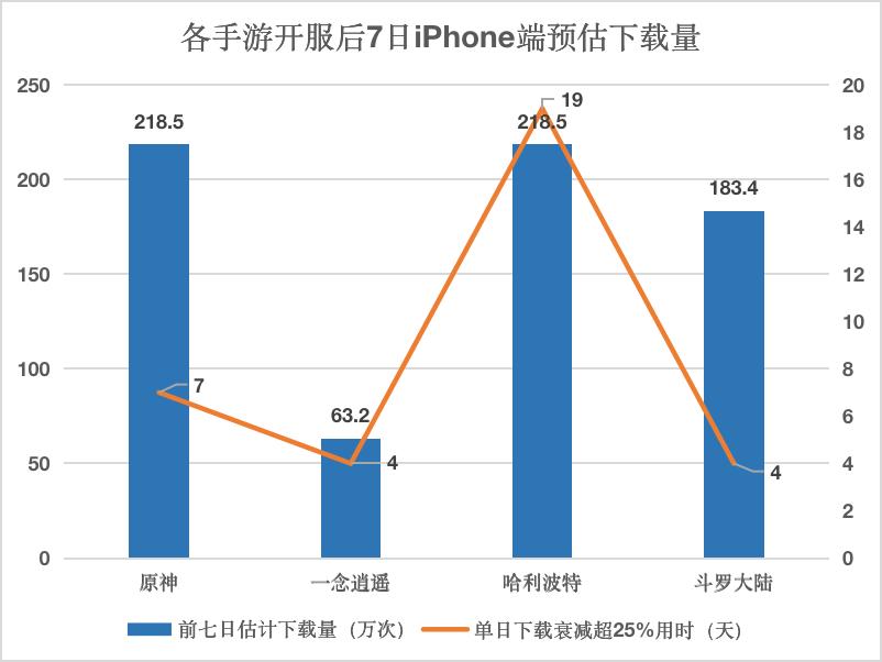 ②开服前7日下载量高达218.5万,与大IP《哈利波特》持平,高于《斗罗大陆》、《一念逍遥》