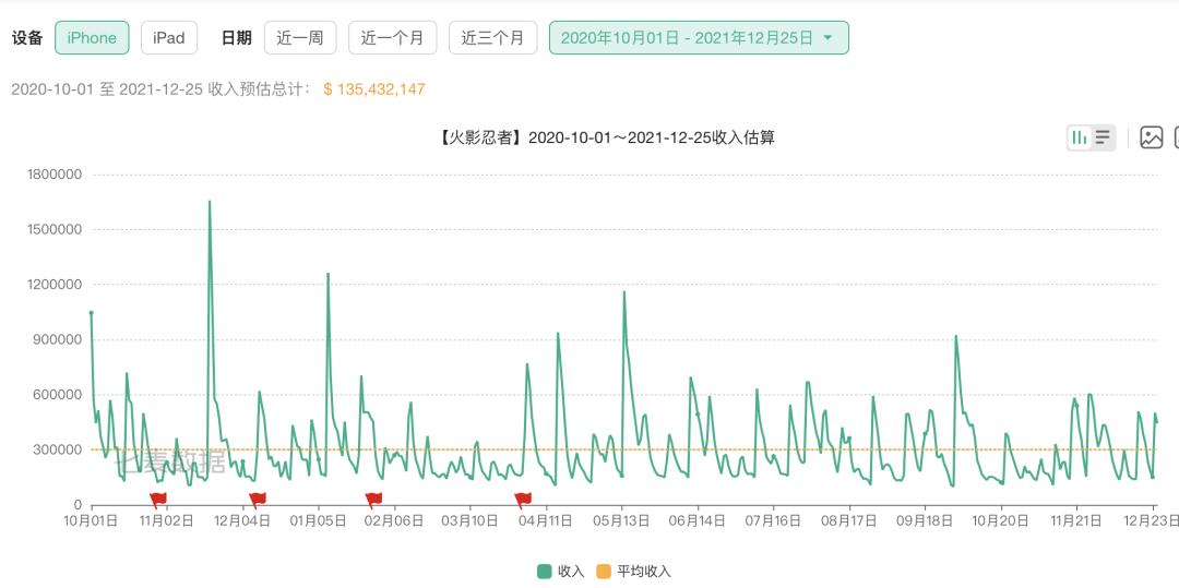 在同样的时间段内,国内其它顶尖手游,收入则要么表现平稳,要么总体下行。