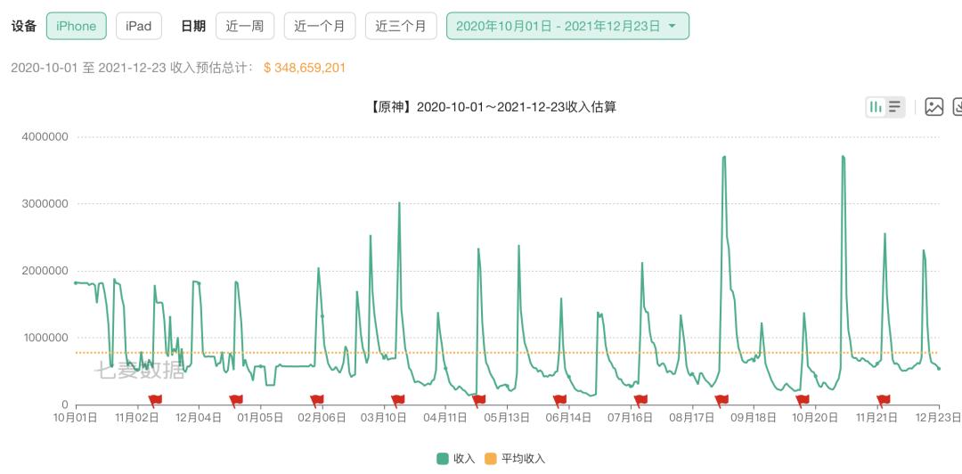 《原神》虽然没有《哈利波特》那样的IP,但对于新手游而言,IP已并非吸金的必需品(《哈利波特》、《斗罗大陆》的吸金效率总体偏低),产品品质的带来口碑效应,以及持续运营,同样能为手游带来不菲的、可持续的收入。