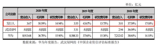 具体而言,报告期内,随着该公司业务规模不断扩大,该公司的营业收入持续增长,期内营收分别为3.01亿元、3.55亿元、3.67亿元、1.77亿元。但说句实在话,相较于华为这一竞争对手的规模而言不亚于“小巫见大巫”——据悉,2020年,华为实现营收为8914亿元,净利润为646亿元。