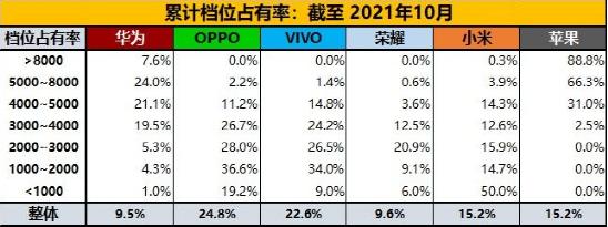 按照权威市场研究机构Counterpoint Research的标准,从全球的角度来看,600美元以上的价位是高端手机的核心战场,也就是4000元价格档位以上的占有率。