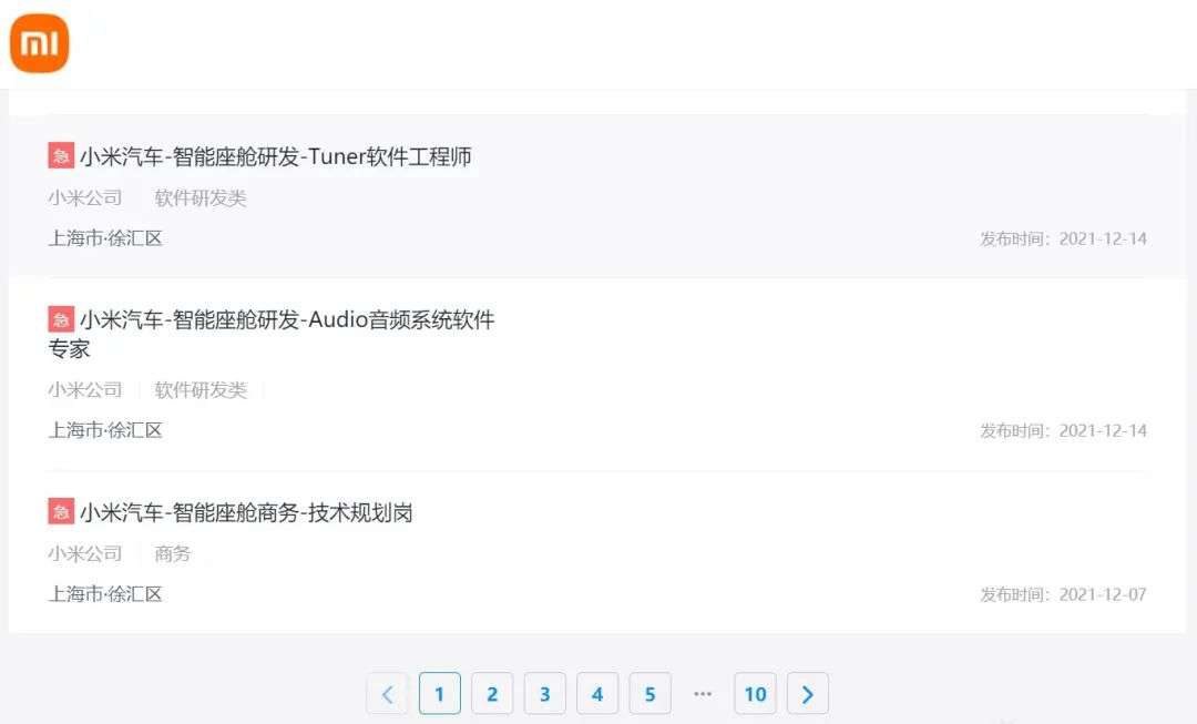 在小米的官方社会招聘网上,与小米汽车相关的岗位多达10页招聘信息,总计150个岗位,大多聚焦于智能座舱开发与设计、汽车供应链采购等,而每一个岗位都标注了大大的“急”字。