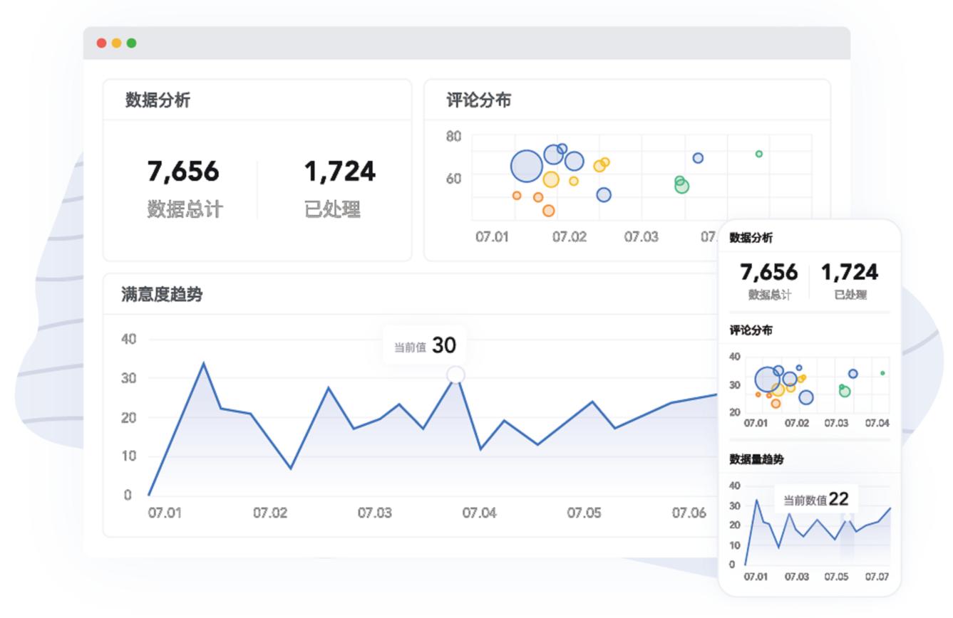 在客户体验管理当中,企业需要关注的客户数据有3大类,分别是体验数据、行为数据和舆情数据。「体验家XMPlus」支持短信、APP等多渠道的体验数据收集,提供API接口,可对接CRM、POS机等系统,导入客户的行为数据,还可以利用爬虫抓取网络上的舆情数据,运用NLP、词频分析、情感分析等技术分析海量的舆情数据,实现体验数据、行为数据和舆情数据的高效收集、融合与分析,帮助企业从多源数据中获得更有价值的客户洞察,推动产品和服务质量的双提升。