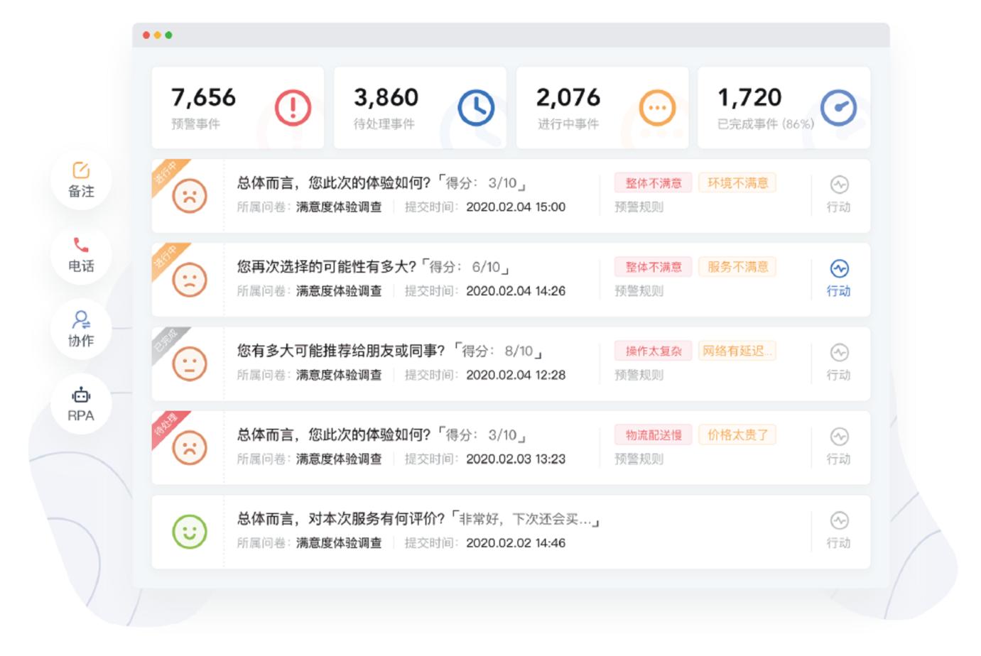 反之,如果企业能及时地察觉到客户的流失倾向,第一时间安抚客户,不但可以消除客户不满,避免客户流失,还有助于提升客户满意度和忠诚度。「体验家XMPlus」提供智能预警,帮助企业监测客户在各个场景下的满意度情况,一旦收集到负面反馈,会自动通知到相关的工作人员,提醒他们及时地安抚客户,帮助客户解决问题,从而有效防止客户流失,增强客户粘性和复购率,提升客户满意度和品牌口碑。