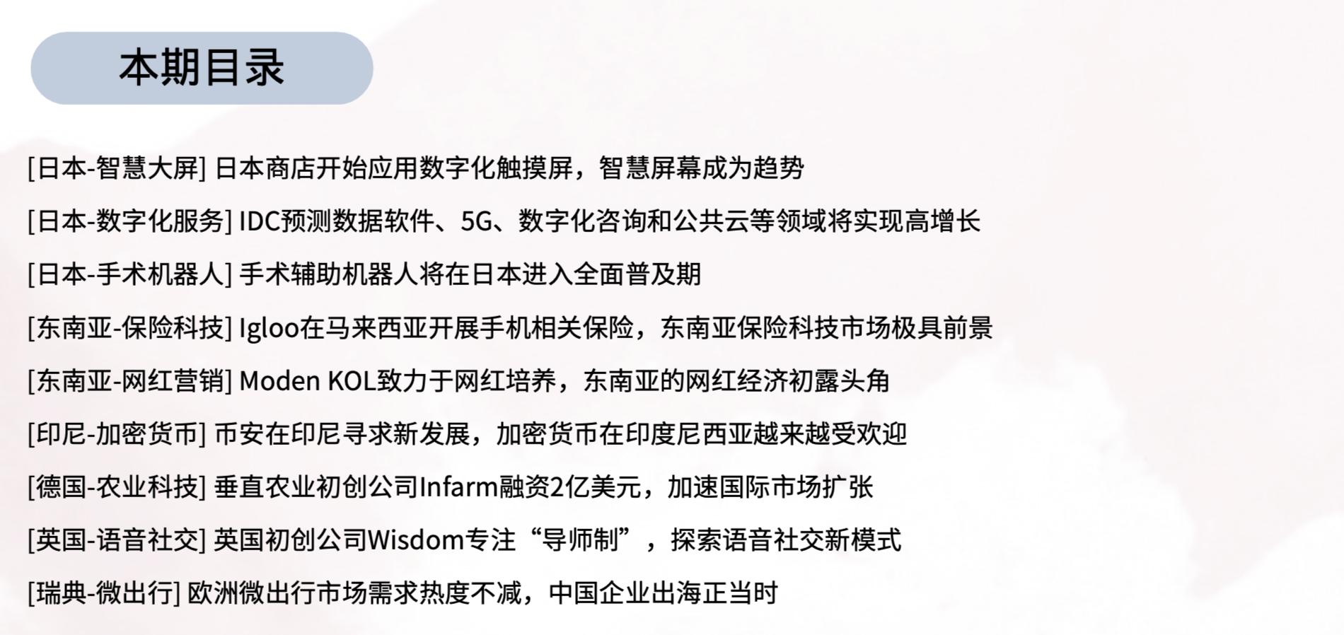 本期全球商业洞察双周报 Vol.22 覆盖主题