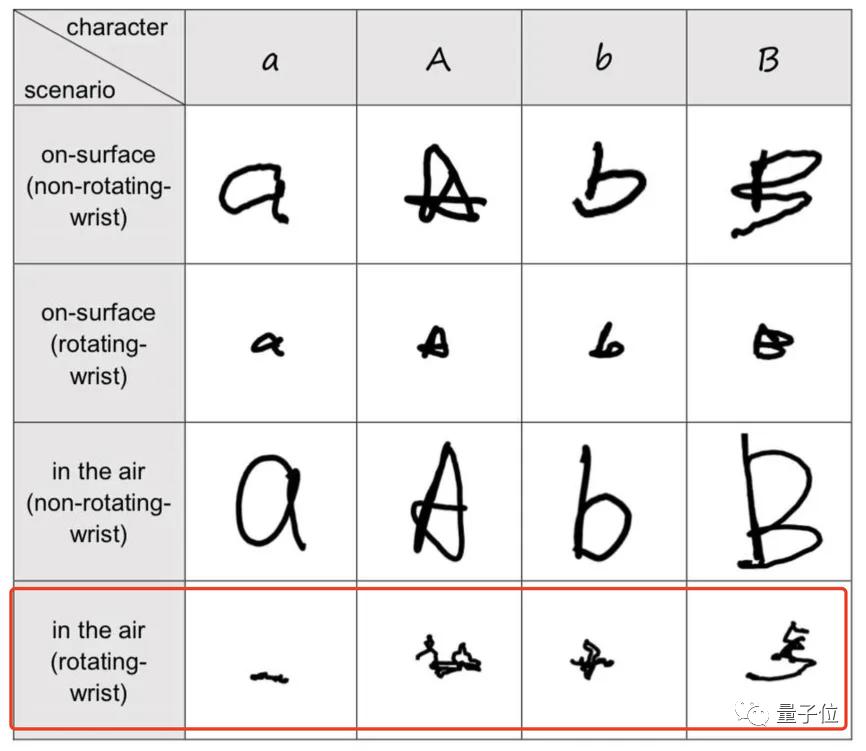 就像下面这张图所展示的,拼写时手腕呈现出来的轨迹和正常字母差得还挺多的。