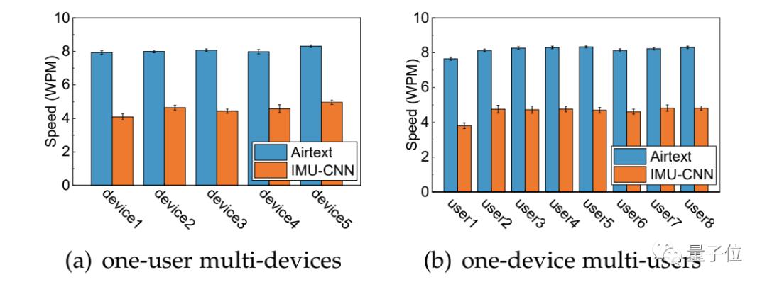 结果AirText的平均WPM为8.1,而IMU-CNN基线的WPM仅为4.6。