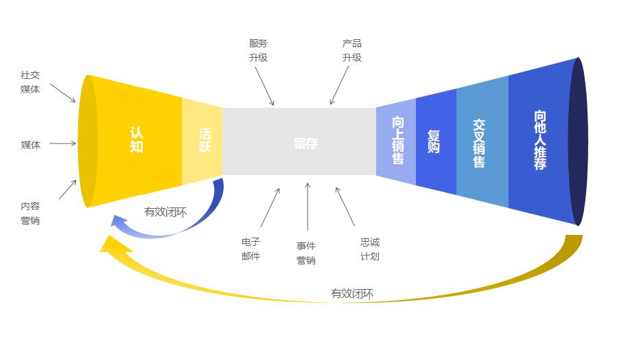 通用性。用户生命周期是运营闭环中通用的工具,同时也能考虑到品牌特定的渠道和触点,用户会根据典型的行为进行分层和分群。