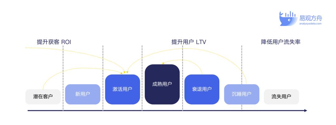 用户生命周期管理还需要有清晰、严格的分析框架,以便可以跟踪和衡量用户生命周期中的人员流动、流失情况,评估整体运营战略的有效性。