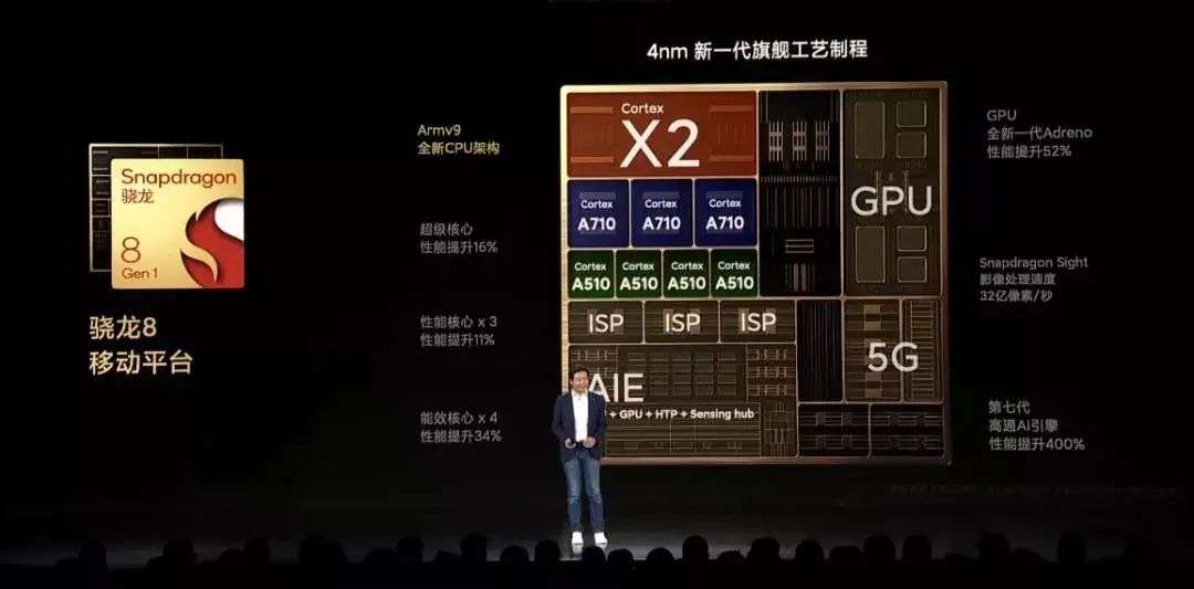 关于这款处理器的具体介绍,可以参考镁客网此前发布的《不再做“火龙”!高通「4nm旗舰芯」骁龙8 Gen 1正式亮相》一文。总得来说,相比于上一代骁龙888,4nm工艺的骁龙8处理器在性能上有很大的提升。