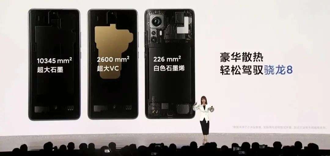 为此,小米12用上了三层散热结构:石墨板+VC液冷+石墨烯,号称“豪华散热,轻松驾驭骁龙8”。不知道高通总裁安蒙看到后会有什么感想。