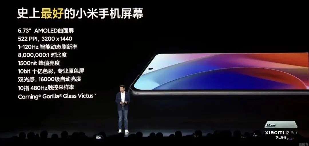 在魏思琪介绍完小米12后,雷总回到了舞台之上,发布了12系列最高端的小米12 Pro。