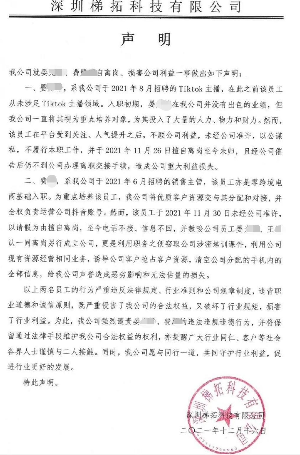 2021年12月16日,深圳梯拓科技有限公司(以下简称“梯拓”)的一份公开声明,让“晏某某”这个名字,再度出现在跨境电商人面前。
