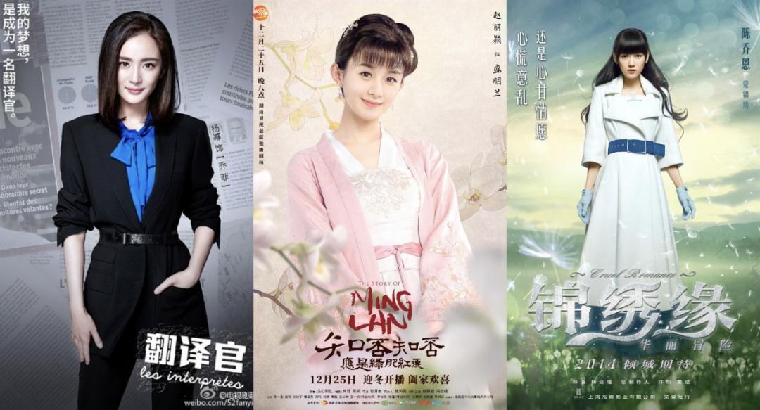 靠《宫锁心玉》大爆之后,杨幂的《亲爱的翻译官》成为2016年的年冠剧,《谈判官》也进入了2018年的前三名;早年间被于正力捧的袁姗姗,有《宫锁珠帘》和《宫锁连城》两部剧入选;通过《陆贞传奇》初露锋芒的赵丽颖,在2018年的转型之作《知否知否应是绿肥红瘦》也拿下了当年年冠。