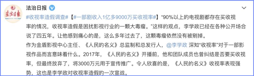 因为重要,大家都想有个好成绩,所以市场屡屡被爆出收视率注水、造假的新闻。前几天,《法治日报》还报道过,90%以上的电视剧都存在买收视率的情况。