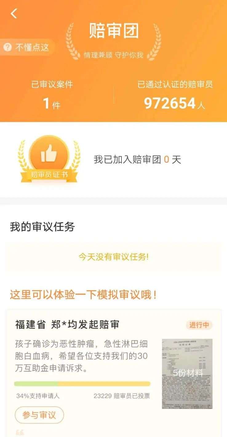 而为了解决这些问题,相互宝引入了另一个引起争议的功能——赔审团。通过用户组成的赔审员投票决定争议案件是否赔付,这是互联网平台一次颇为先锋的实验,随着相互宝关停,我们也可以回过头来重新审视它。