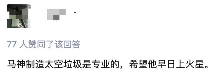 「马神制造太空垃圾是专业的,希望他早日上火星。」