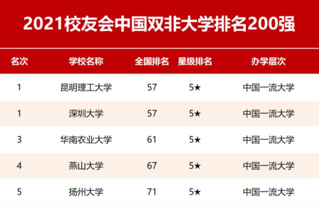 △2021校友会中国双非大学排名200强,部分(可上下滑动查看) | 来源:艾瑞深研究院中国校友会网