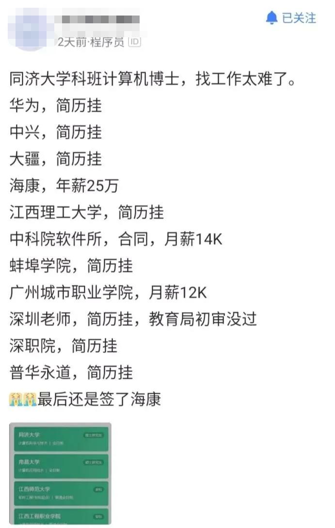 而即便通过考研上了名校,依然无法改变学历受歧视的命运。
