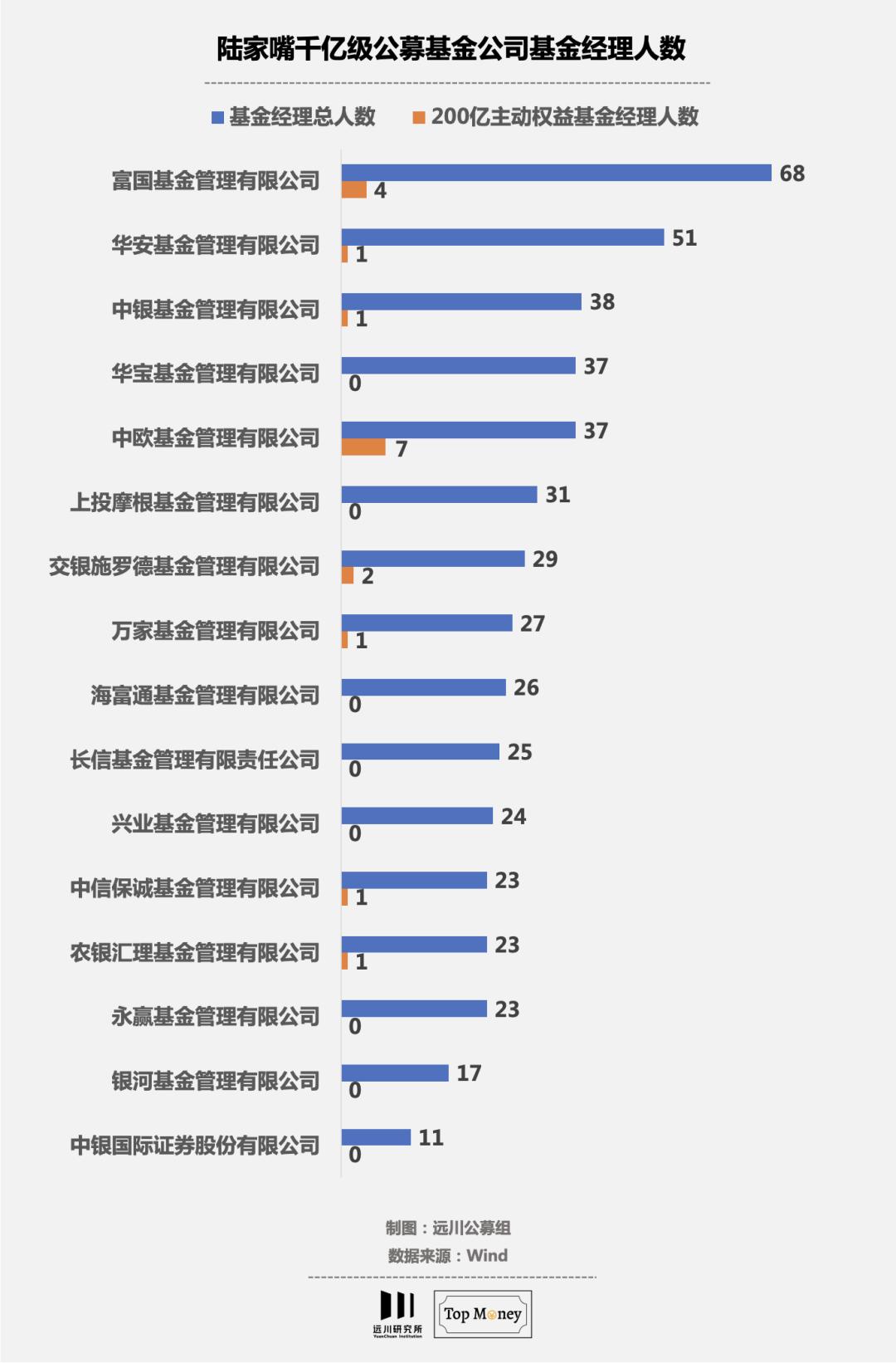 在陆家嘴中,拥有基金经理最多的公募基金公司是富国基金,但拥有头部基金经理最多的是中欧基金,这或许也和中欧曾经采用的,用明星基金经理做事业部制的打法有密切的关系。