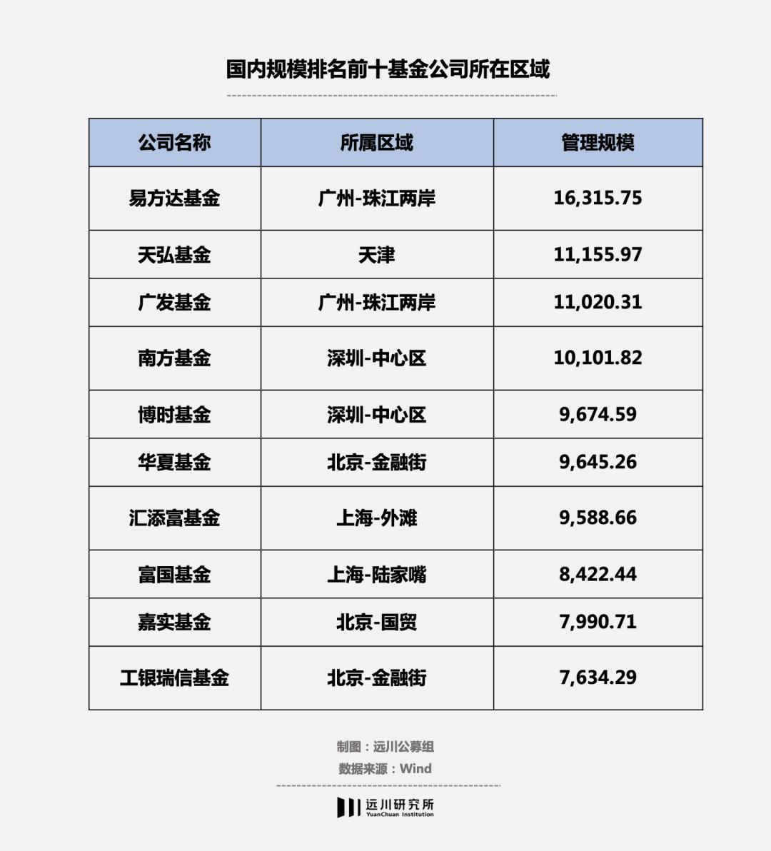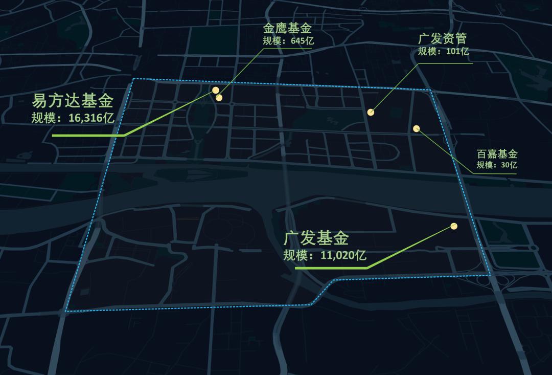 值得一提的是,相对陆家嘴的百花齐放,广州的公募数量虽然少,但把基金业的“马太效应”发挥到了极致。两家万亿级别的公募基金公司——易方达和广发,隔着一条珠江相望,直接把这片水域的资产管理规模抬上了全国第三。
