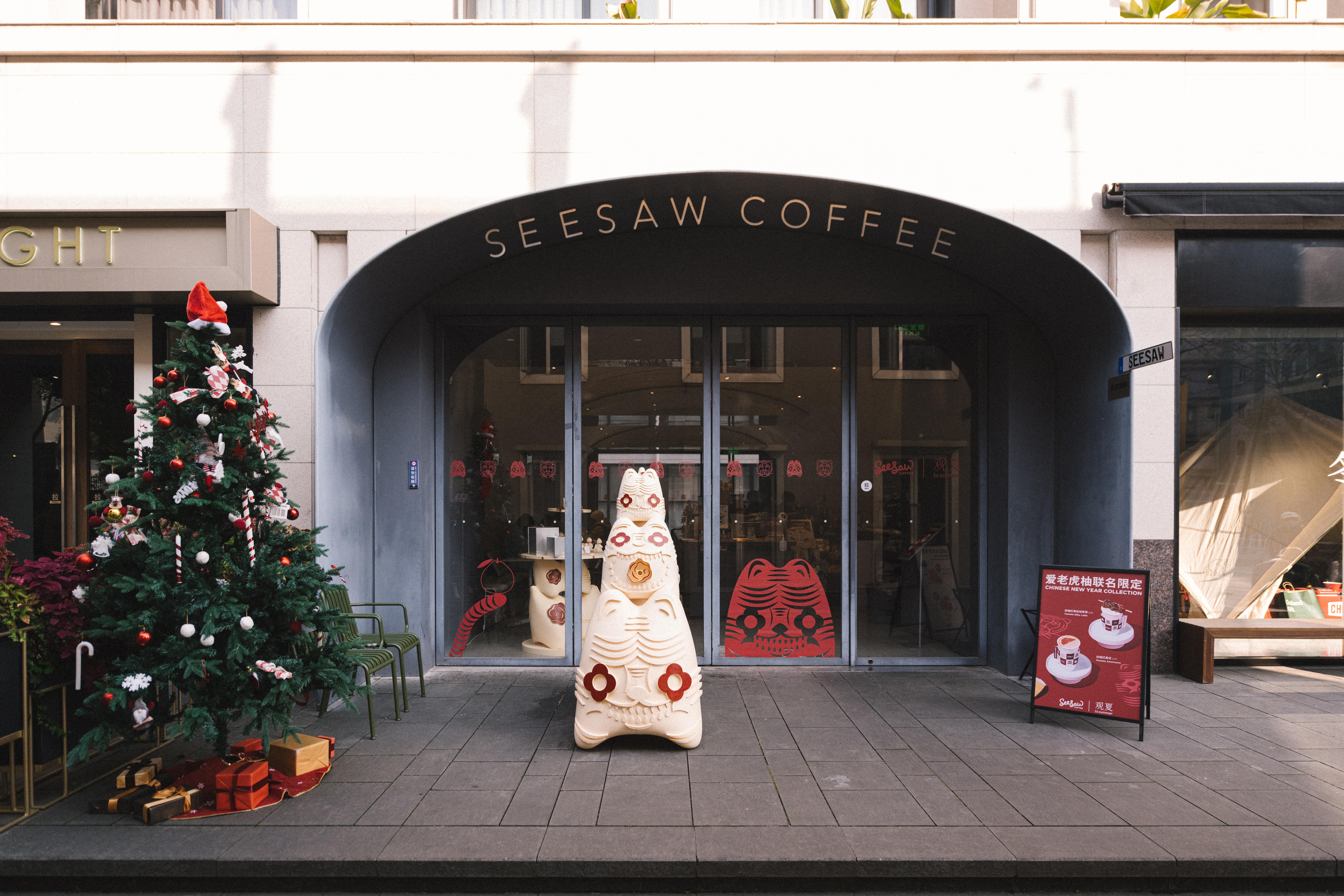 除了新春特调与春节限定咖啡挂耳礼盒,虎年艺术窗贴也值得一提。“虎”字设计,既保留了传统汉字的韵味,又贴合当下的国潮风;动物窗贴则展现出老虎憨态可掬的形象特点,为静谧的场域注入了一丝生机。通过营造新潮的氛围, Seesaw 一方面满足了年轻消费者的拍照打卡需求,另一方面提升了品牌的辨识度。