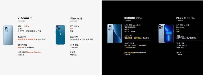 小米12系列与苹果13系列的产品参数对比,