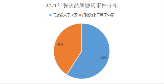 据统计,2021年以门店数出发,门店数在50家及以下的餐饮品牌最受资本青睐,融资事件数占比高达41%。