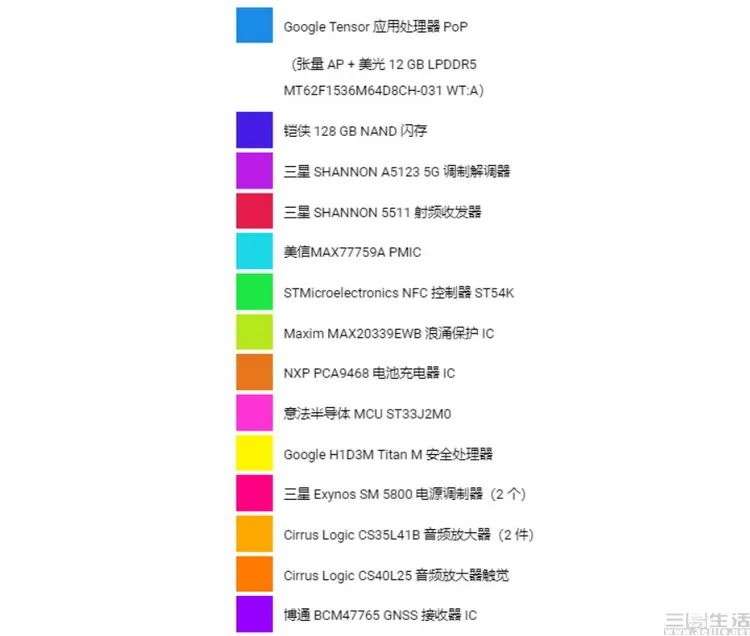 应用处理器:1颗(谷歌向三星定制的Tensor芯片)