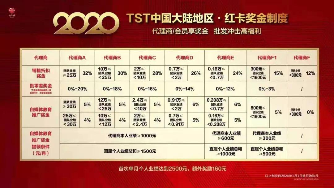 在TST的模式中,红卡才是核心。在红卡模式中,会员可以通过发展下一级代理,增大销售额,从而享受更高的提成比例。