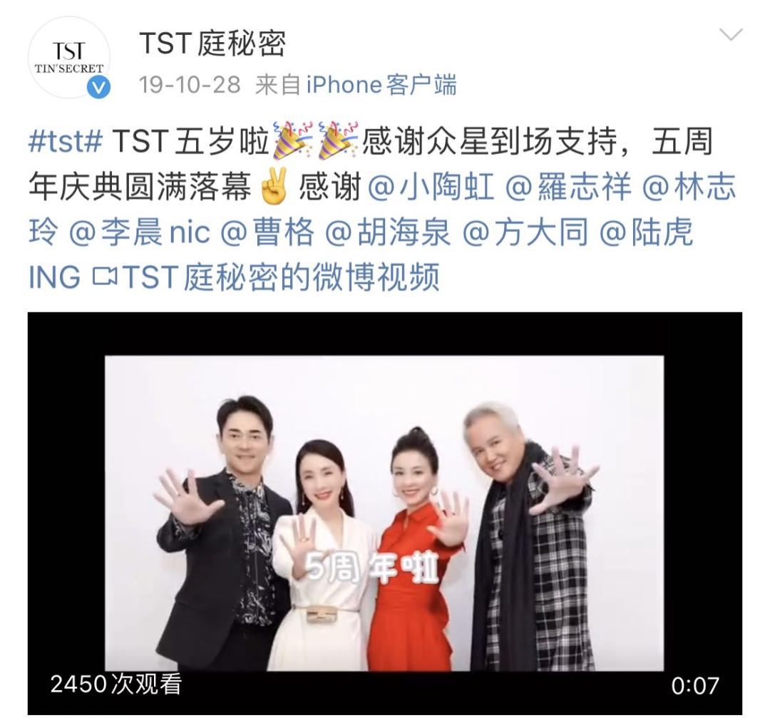 另外,凭借自己的圈层关系,很多明星为TST站台。