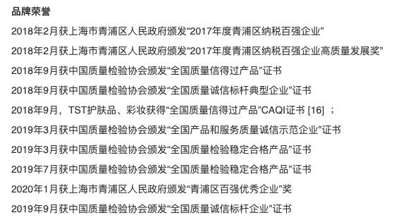 为了凸显正规和正能量,TST还会经常参与一些公益活动。在TST官网上的荣誉一栏中,排名第一的就是TST在2018年2月获上海市青浦区人民政府颁发“2017年度青浦区纳税百强企业”。