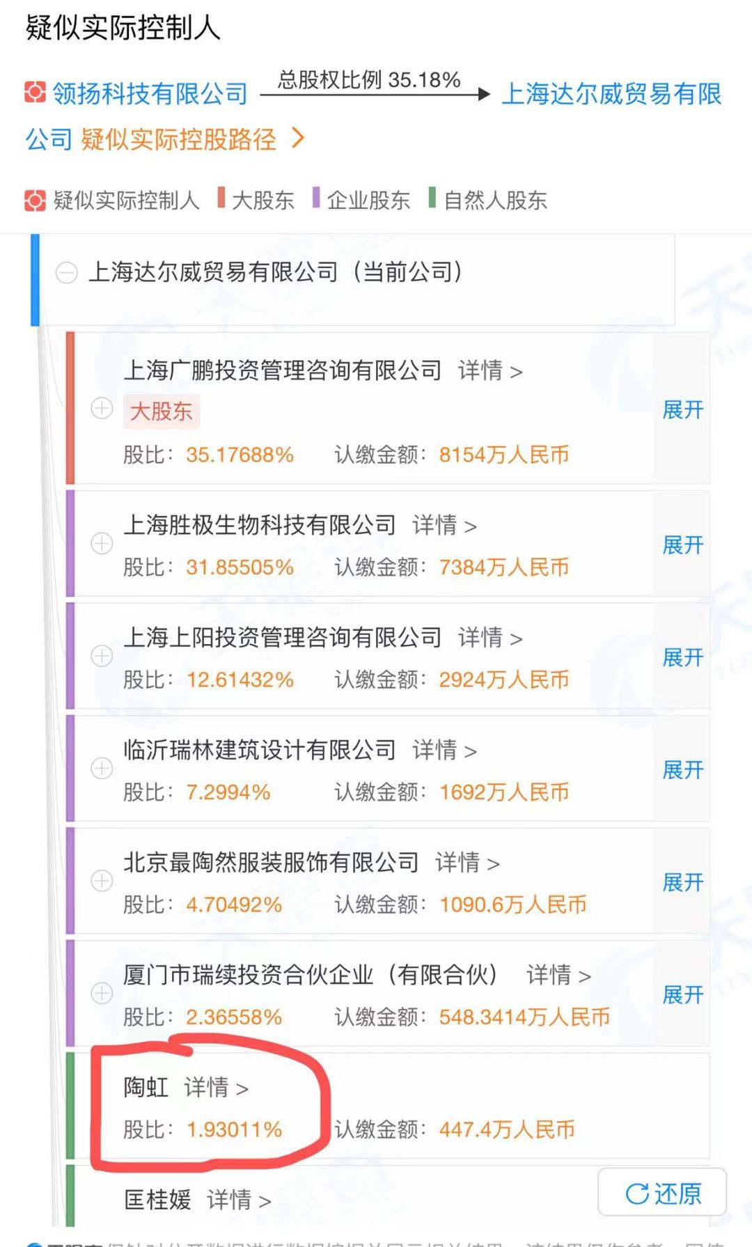 陶虹目前是TST主体上海达尔威贸易有限公司的股东。