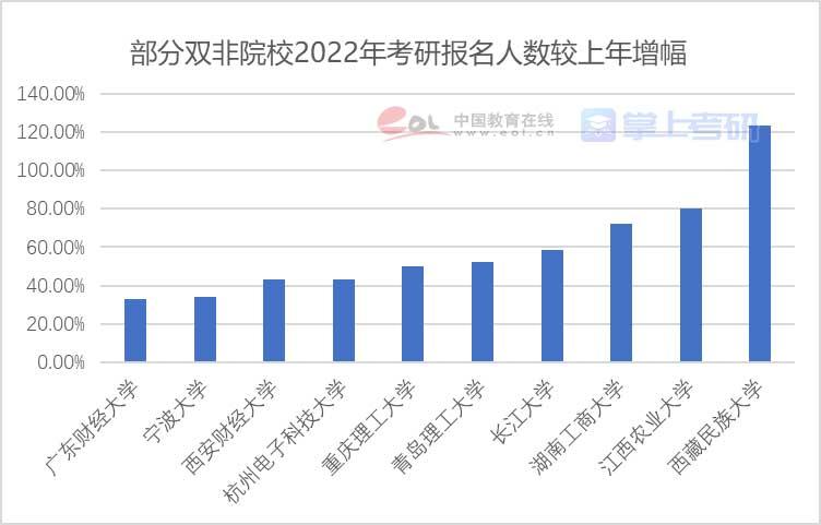 据不完全统计,在已公布2022年研考报名人数的非“双一流”高校中,江西农业大学、陕西理工大学、湖南工商大学、长江大学、青岛理工大学、重庆理工大学等高校报考人数涨幅均超过50%。
