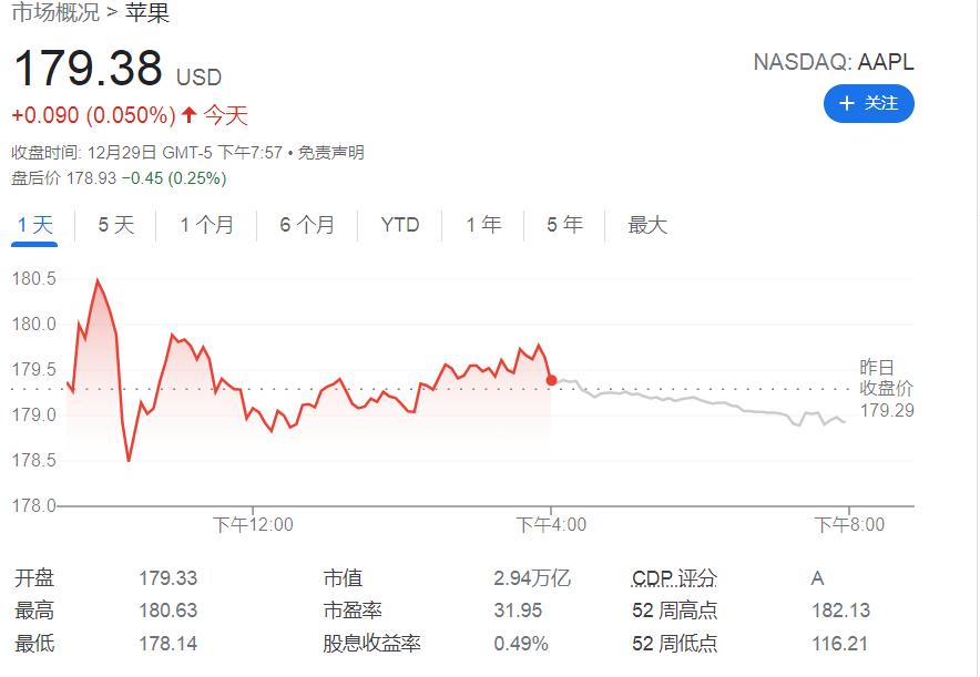 截止今日收盘,苹果收涨0.05%,今年迄今涨幅近39%。