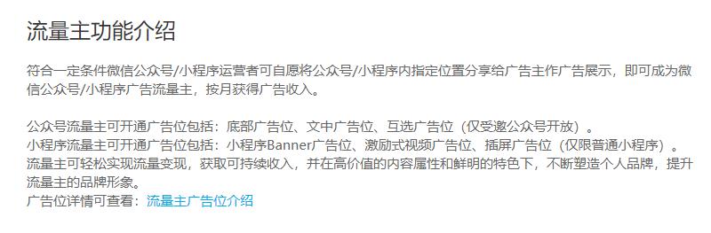 时间回到2014年7月7日,微信公众平台发布公告称面向超过10万粉丝的公众号开通流量主功能。此举一出,流量时代开始正式拉开序幕:只要有流量,流量主功能就会给自媒体人带来源源不断的收入。