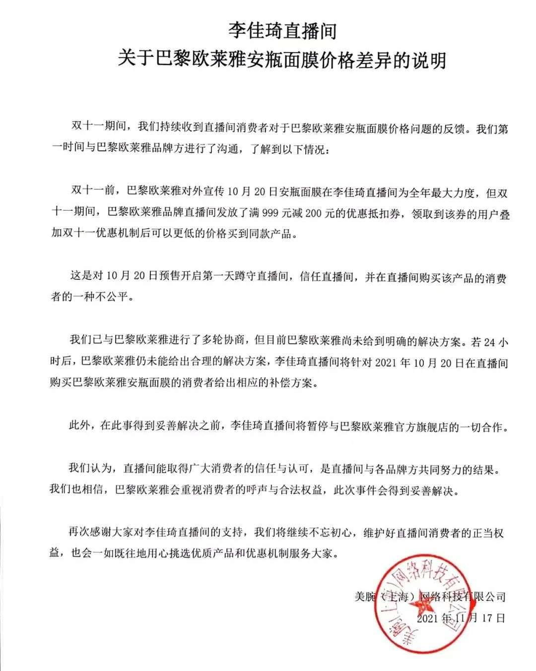在双十一预售期间,欧莱雅与主播合作时使用了“全年最大力度”的宣传标语,但活动当天,欧莱雅直播间却出现了更低价,便将品牌想要脱离主播的心思公之于众。
