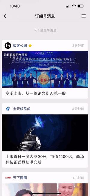 按照目前的推送机制,当用户成为某公证号的「常读用户」以后,该公众号就会出现在信息流上方,方便用户直接打开。