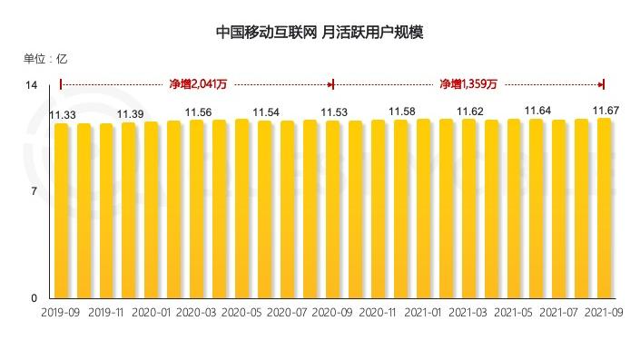 小程序打开APP就此告一段落,但APP对流量的觊觎不会停止。QuestMobile发布的《2021年中国移动互联网秋季大报告》显示,移动互联网覆盖趋于饱和,截至9月底,年度新增月活用户仅1359万,较上一周期再度减少。