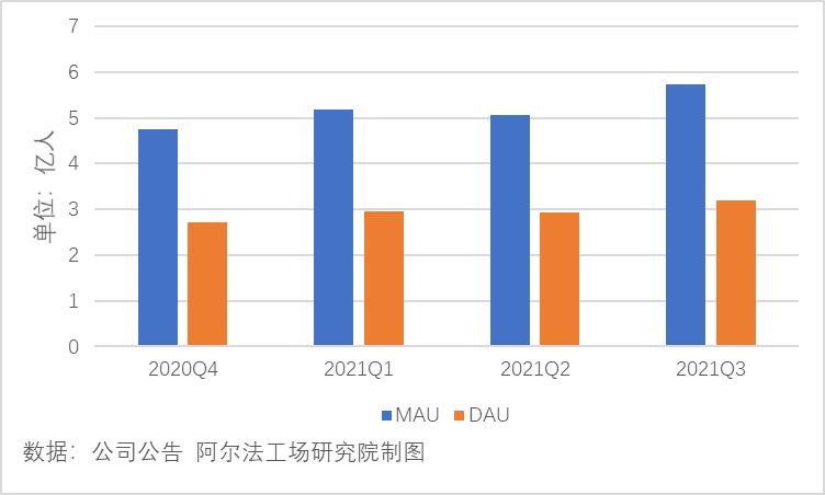 2020年9月,抖音官宣日活破6亿。快手直到今年三季度,日活也只达到抖音2020年9月的一半。