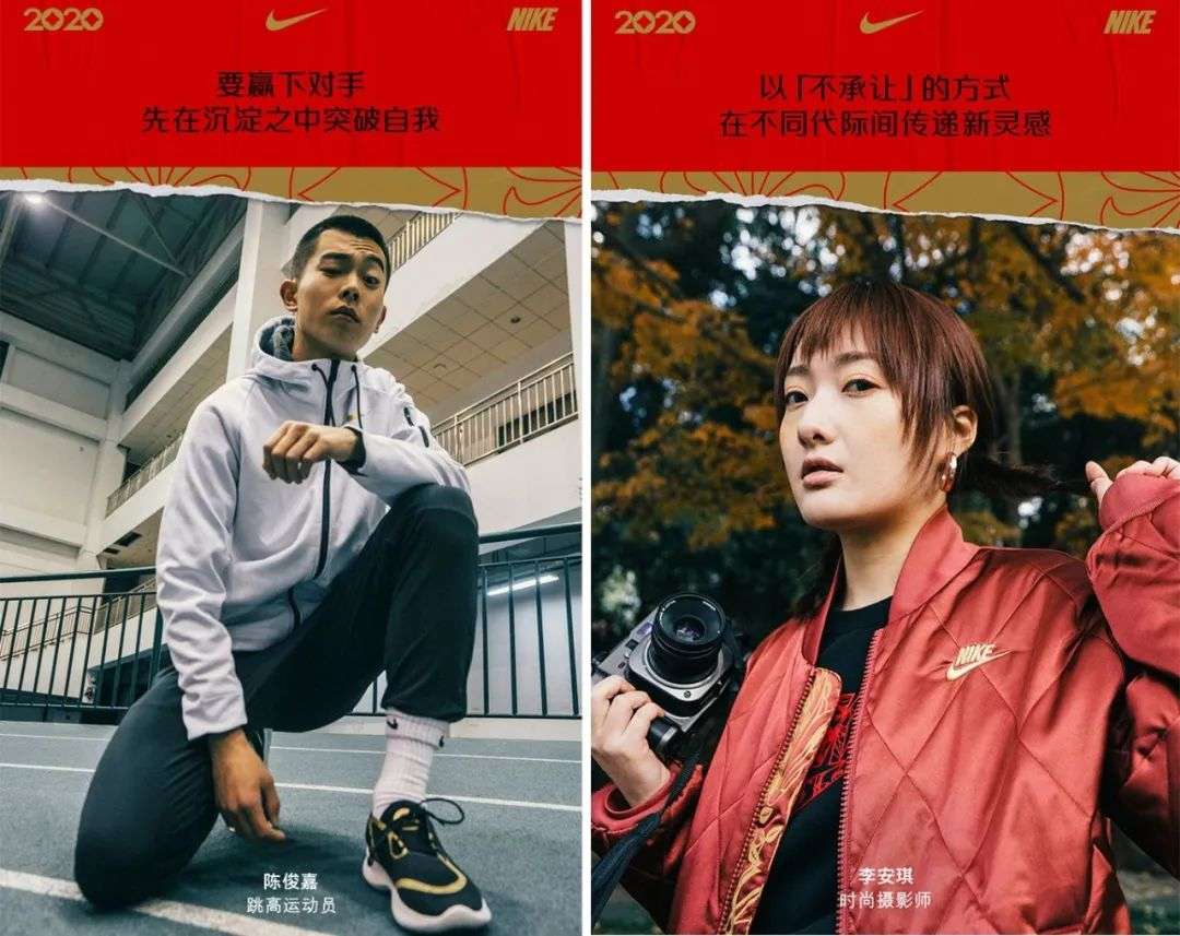 这方面我最喜欢的春节营销案例是耐克2020春节的营销主题“新年不承让”。