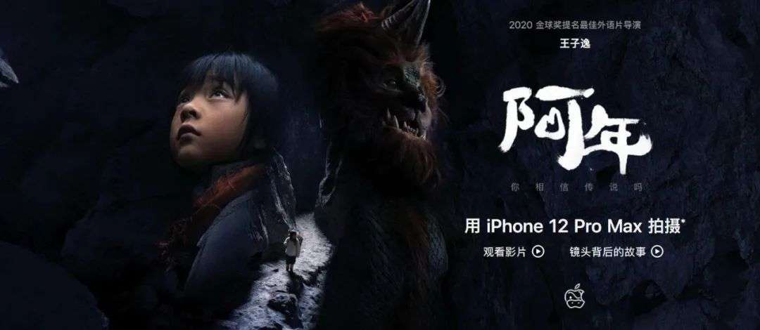 在这些广告中,画面都是短片海报、片名,苹果只有一个小小的logo,完全是像电影宣发的广告一样,只宣传电影本身。但这种毫无商业色彩的春节营销,除了苹果有多少企业有资格做呢?