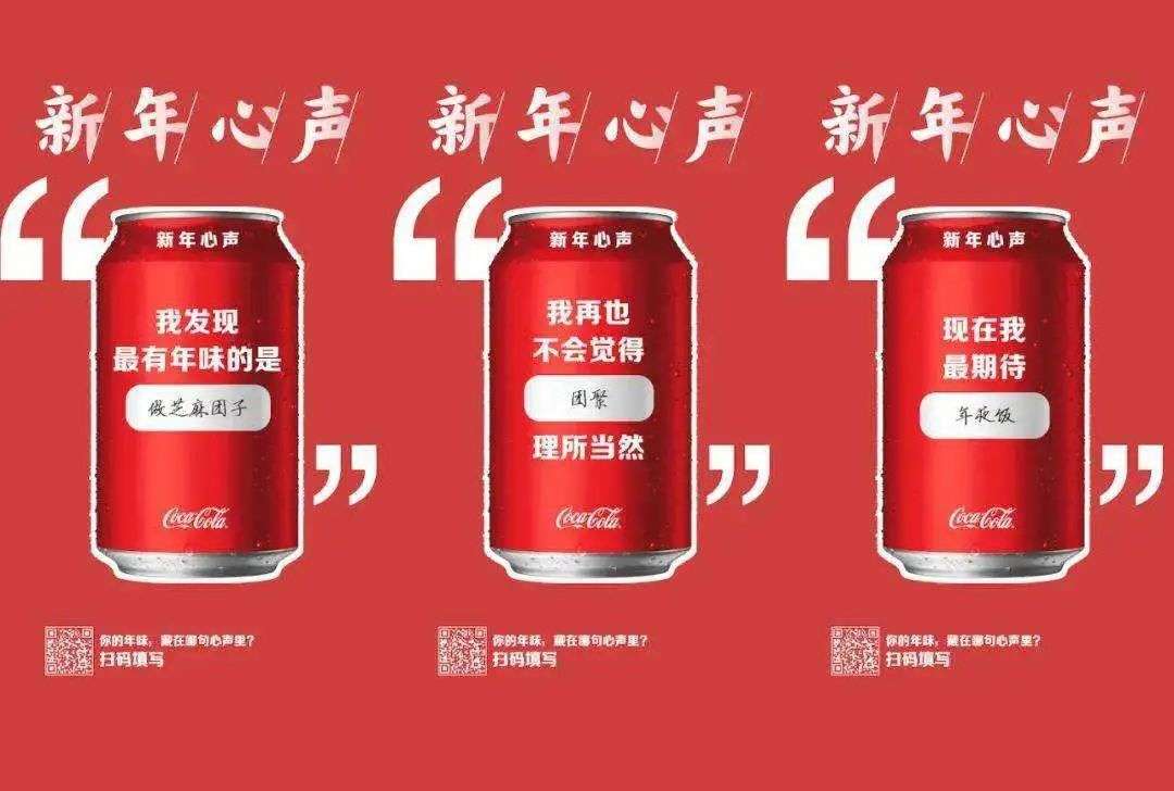 在传播这三条短片的同时,可口可乐还同步上线了一套心声瓶,三个瓶子上的文案分别是“我发现最有年味的是________”、“我再也不会觉得________理所当然”、“现在我最期待________”,然后让消费者去填空,去说出他们的心声。这就是一个非常契合当下春节环境的营销案例,也充分体现了可口可乐的人文情怀。