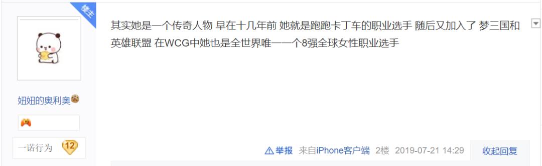 虎妞的十年电竞之路风光无限,退居幕后在圈内依然有“传说”。百度“KPL吧”里有人问起虎妞为何能受到多数KPL教练尊重,最热门的答案是她资格老,老到“她获奖无数的时候,如今‘大部分职业选手’都还在玩泥巴”,而且是“真电竞”——不仅限于MOBA,还囊括泡泡卡丁车、梦三国——比从众的“后来者们”不知道高到哪里去了。