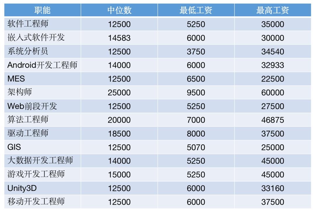 由于小公司可能没有这个岗位,大公司也只有极少数人能升任此职位,对于部分超高薪资水平的岗位,表中并未列入。