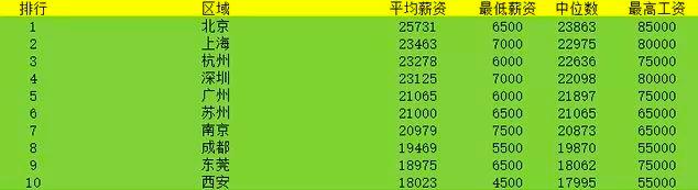 总之,在以下10座城市打拼的码农们基本薪资差不多能拿到2万元。