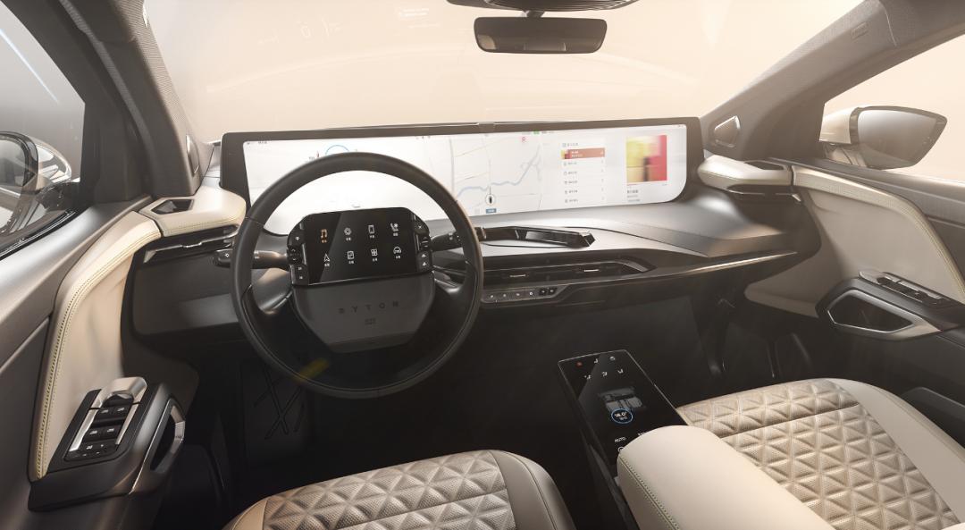 其首款车型M-Byte上,那个和电视差不多大的48英寸巨型屏幕,从主驾驶位延伸到副驾驶位,第一眼看到惊为天人。