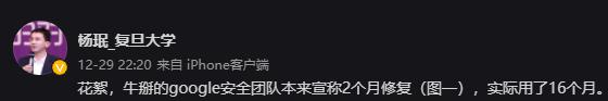 去年九月,复旦大学计算机学院教授杨珉和他的同事们整理提交了400多个漏洞给谷歌,但是这些漏洞一直到今年年底才被修复完。