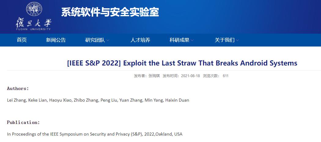 这一研究以一篇名为「Exploit the Last Straw That Breaks Android Systems」的论文发表于网络安全顶会IEEE S&P 2022。