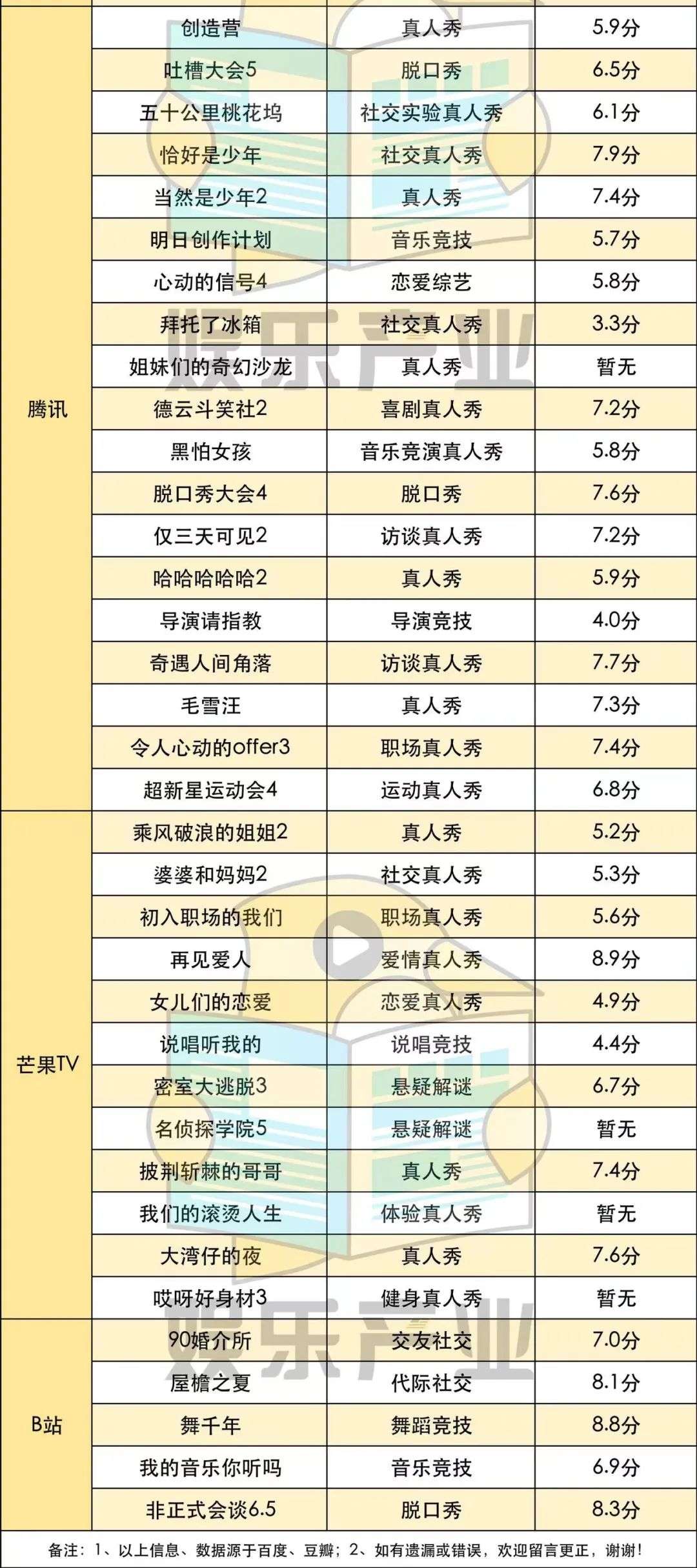 其他像《德云斗笑社》2、《哈哈哈哈哈》2、《令人心动的offer》3、《超新星运动会》4等综N代也表现良好。反倒是创新的《导演请指教》、《拜托了冰箱轰趴季》,口碑和流量都远不如预期。